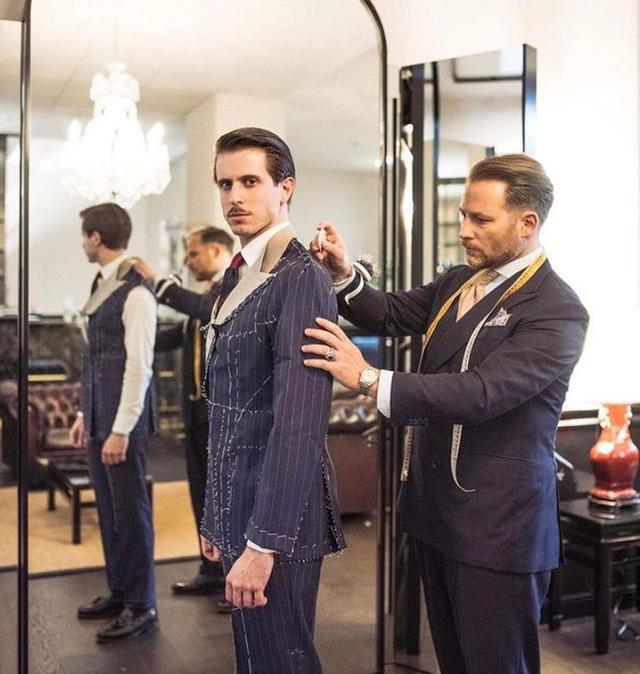 全定制(Bespoke)简单来说就是一套西装“从无到有”,即先根据体型和尺寸,版型师单独手工制版、剪裁,然后作出半成品试穿,根据试穿在进行修改,然后在进行第二次试穿,再做调整,最终经过30天左右的时间才可以做成成品;